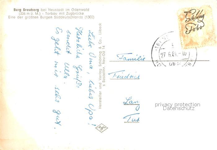72999696 alte Postkarte Neustadt Odenwald Burg Breuberg postalisch gelaufen Erhaltung siehe scans [AndreD76] KatCode: 11110006437004
