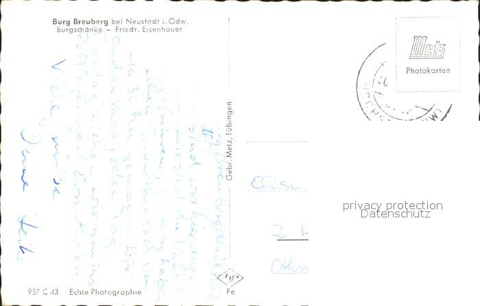 72209336 alte Postkarte Neustadt Odenwald Burg Breuberg Burgschaenke postalisch gelaufen Erhaltung siehe scans KatCode: 11110006437004