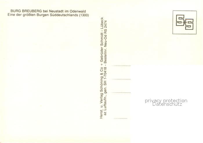 73614550 Neustadt Odenwald Burg Breuberg Fliegeraufnahme postalisch nicht gelaufen Erhaltung siehe scans [PaolaD17] KatCode: 11110006437004