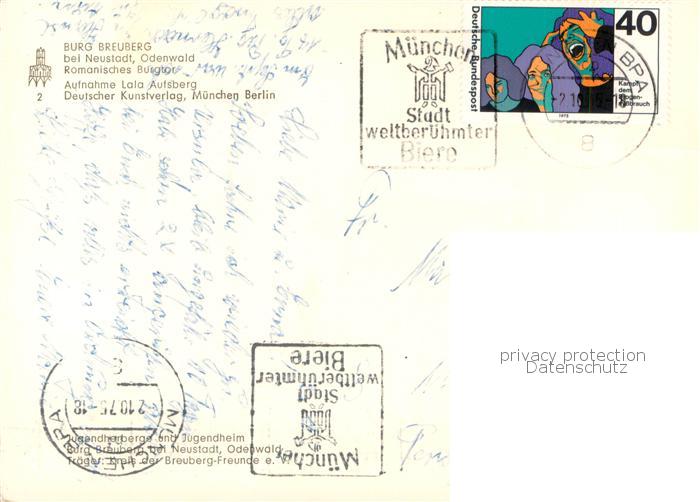 73780093 alte Postkarte Neustadt Odenwald Burg Breuberg Jugendherberge und Jugendheim postalisch gelaufen Erhaltung siehe scans [FriedD77] KatCode: 11110006437004