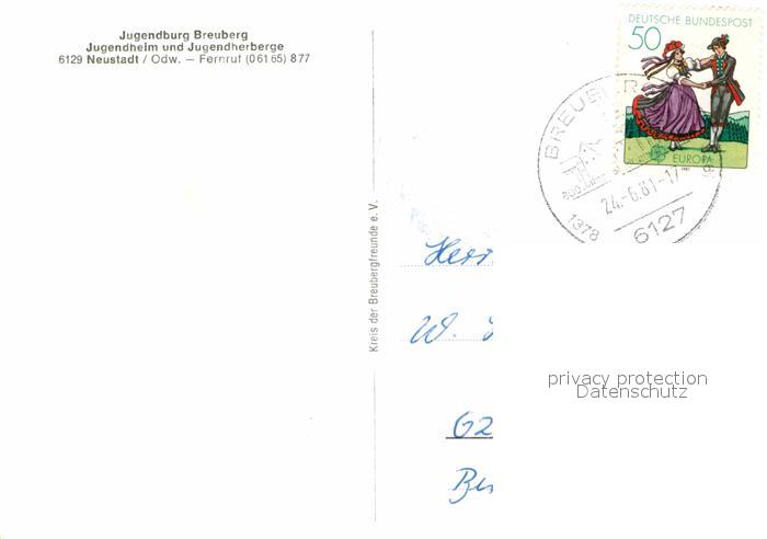 72797689 alte Postkarte Neustadt Odenwald Jugendburg Breuberg postalisch gelaufen Erhaltung siehe scans [NatalD47] KatCode: 11110006437004