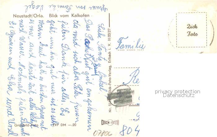 72642803 alte Postkarte Neustadt Orla Blick vom Kalkofen postalisch gelaufen Erhaltung siehe scans [AndreD76] KatCode: 11110016075073