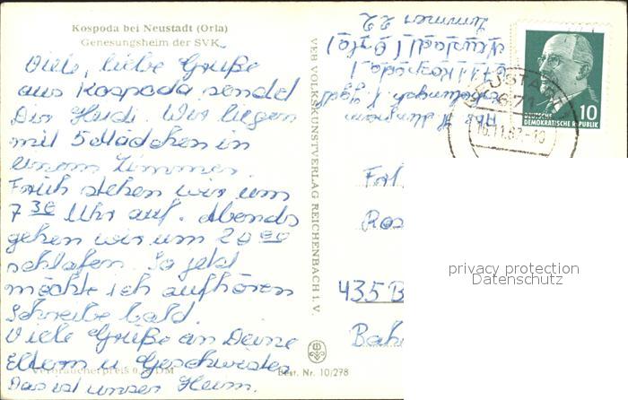 71987295 alte Postkarte Neustadt Orla Kospoda Genesungsheim SVK postalisch gelaufen Erhaltung siehe scans KatCode: 11110016075073