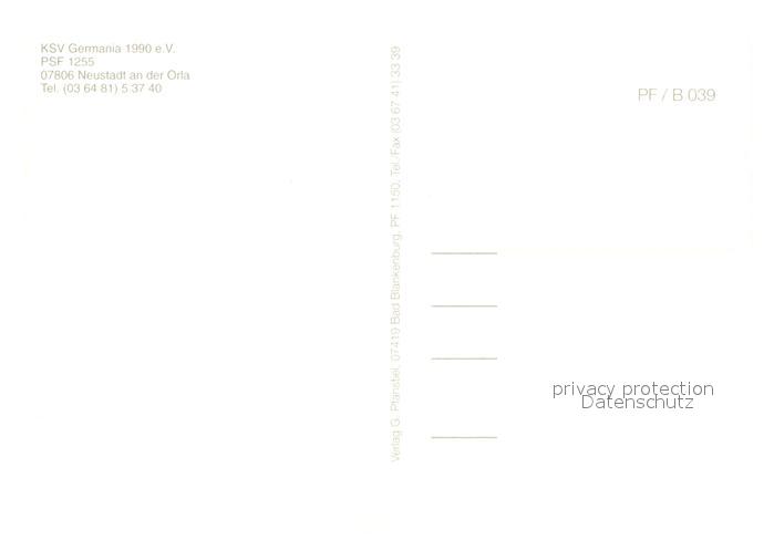 73209660 Neustadt Orla KSV Germania Kegelbahn Gaststaette postalisch nicht gelaufen Erhaltung siehe scans [WerneD78] KatCode: 11110016075073