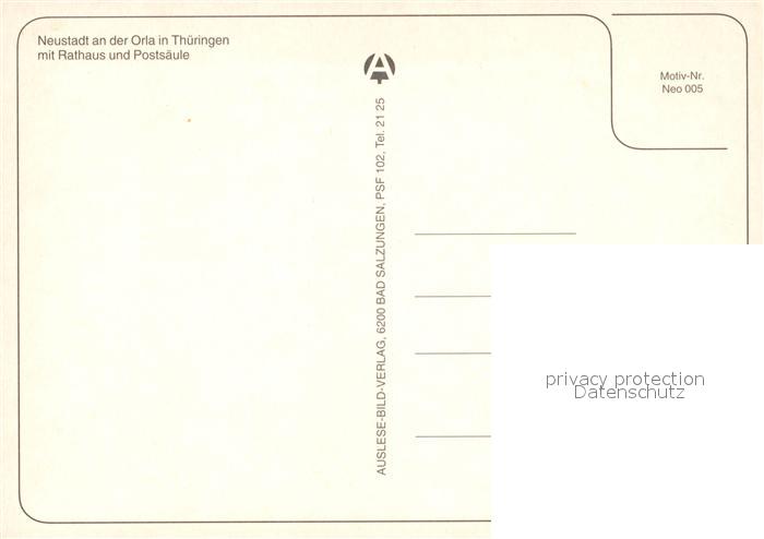 73268175 Neustadt Orla Ortsmotive Innenstadt Rathaus Postsaeule Wappen postalisch nicht gelaufen Erhaltung siehe scans [FriedD77] KatCode: 11110016075073