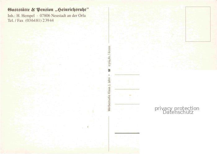 74039086 Neustadt Orla Thueringen Gaststaette Heinrichsruhe Aussichtsturm Park Pferde Gastraeume postalisch nicht gelaufen Erhaltung siehe scans [WerneD78] KatCode: 11110016075073