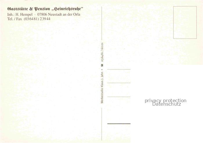 74043580 Neustadt Orla Thueringen Gaststaette Pension Heinrichsruhe Gaststube Garten Pferdekoppel postalisch nicht gelaufen Erhaltung siehe scans [FriedD77] KatCode: 11110016075073