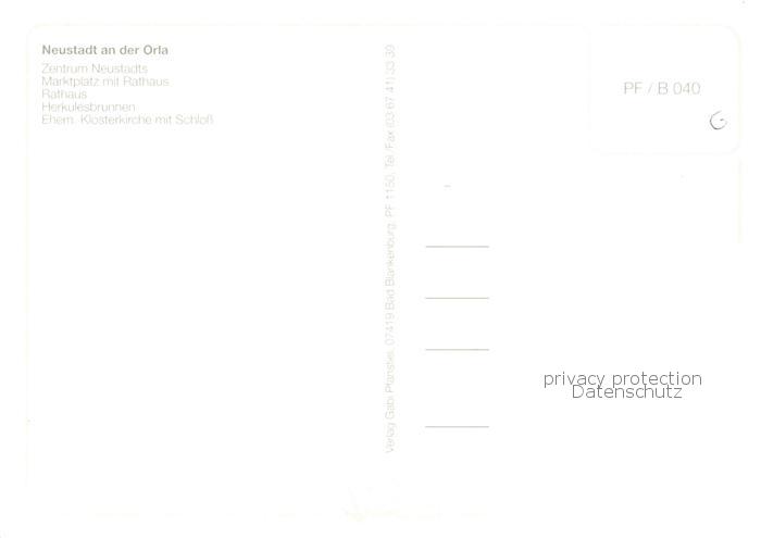 73840269 Neustadt Orla Zentrum Marktplatz mit Rathaus Herkulesbrunnen Ehem Klosterkirche mit Schloss postalisch nicht gelaufen Erhaltung siehe scans [WerneD78] KatCode: 11110016075073