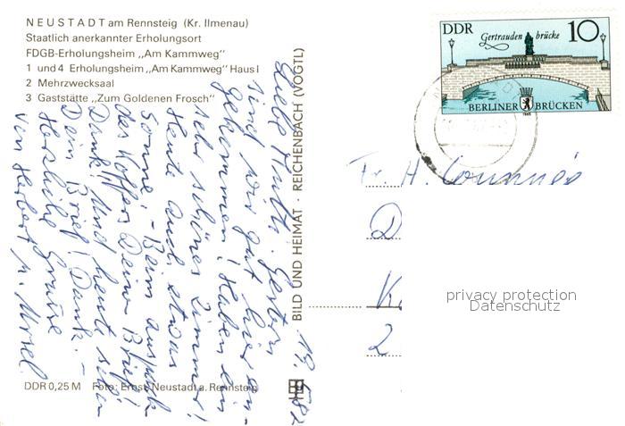 73047627 alte Postkarte Neustadt Rennsteig Erholugsheim Am Kammweg Gaststaette Zum Goldenen Frosch postalisch gelaufen Erhaltung siehe scans [PaolaD17] KatCode: 11110016070038