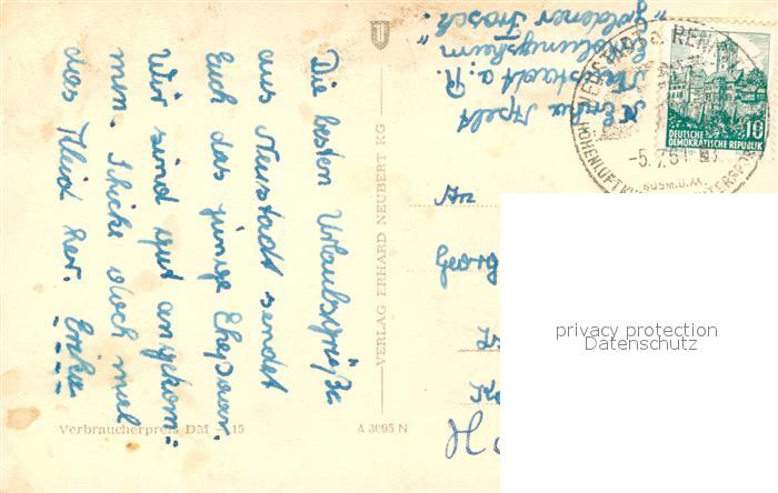 73750144 alte Postkarte Neustadt Rennsteig Ortsansicht Landschaftspanorama postalisch gelaufen Erhaltung siehe scans [FriedD77] KatCode: 11110016070038