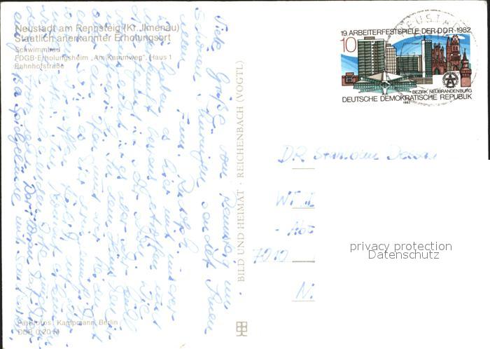72333843 alte Postkarte Neustadt Rennsteig Schwimmbad Erholungsheim am Kammweg postalisch gelaufen Erhaltung siehe scans KatCode: 11110016070038