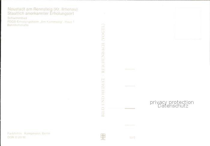 72518999 Neustadt Rennsteig Schwimmbad FDGB Erholungsheim Bahnhofstrasse postalisch nicht gelaufen Erhaltung siehe scans KatCode: 11110016070038