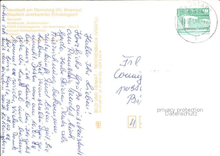 72261055 alte Postkarte Neustadt Rennsteig Waldbaude FDGB Erholungsheim Konsum Einkaufszentrum Freibad postalisch gelaufen Erhaltung siehe scans KatCode: 11110016070038