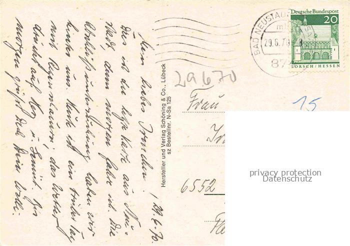 74141953 alte Postkarte Neustadt Saale Bad Neustadt Bayern Sol und Moorbad Hotel Bruennenhalle postalisch gelaufen Erhaltung siehe scans [SanaeD93] KatCode: 11110009673114