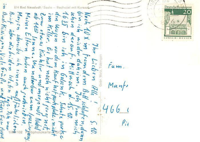 73924176 alte Postkarte Neustadt Saale Badhotel Kursaal postalisch gelaufen Erhaltung siehe scans [FriedD77] KatCode: 11110009673114