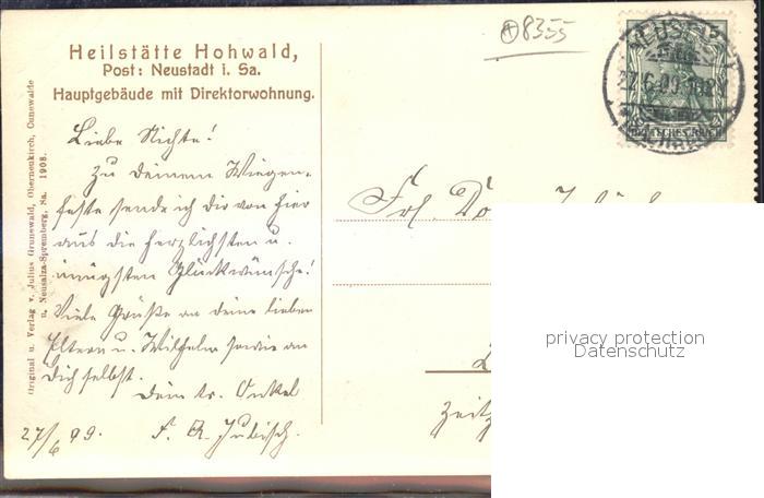 42191536 alte Postkarte Neustadt Sachsen Heilstaette Hohwald Hauptgebaeude Direktorwohnung postalisch gelaufen Erhaltung siehe scans KatCode: 11110014287270
