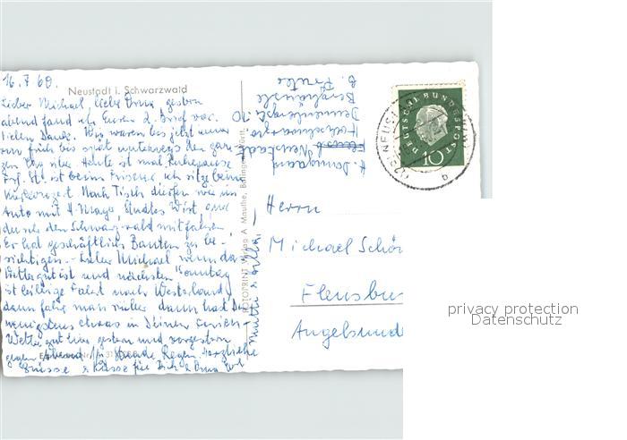 72389952 alte Postkarte Neustadt Schwarzwald postalisch gelaufen Erhaltung siehe scans KatCode: 11110008315113