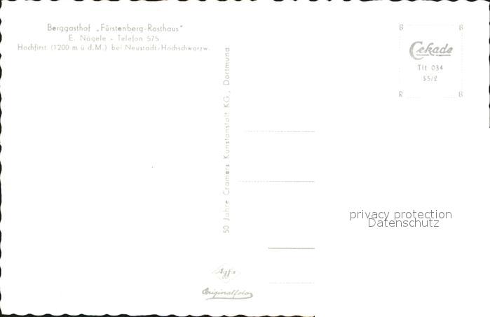 72581290 Neustadt Schwarzwald Berggasthof Fuerstenberg Rasthaus Fliegeraufnahme postalisch nicht gelaufen Erhaltung siehe scans [AndreD76] KatCode: 11110008315113