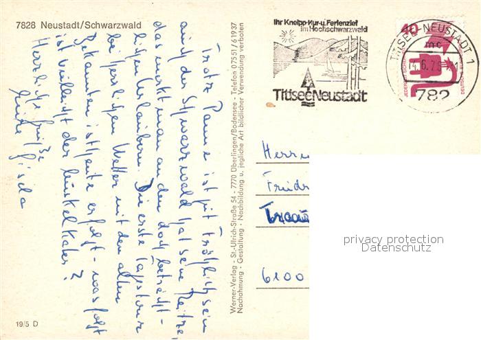 73108059 alte Postkarte Neustadt Schwarzwald Fliegeraufnahme postalisch gelaufen Erhaltung siehe scans [KathaD81] KatCode: 11110008315113