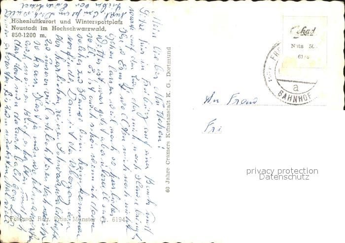 72543499 alte Postkarte Neustadt Schwarzwald Fliegeraufnahme postalisch gelaufen Erhaltung siehe scans [WerneD78 kv016box] KatCode: 11110008315113