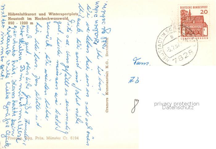 73745117 alte Postkarte Neustadt Schwarzwald Fliegeraufnahme postalisch gelaufen Erhaltung siehe scans [WerneD78] KatCode: 11110008315113