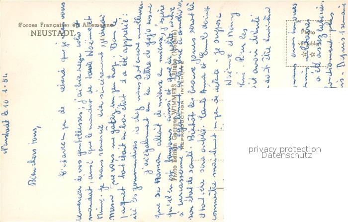 73747915 Neustadt Schwarzwald Forces Francaises en Allemagne postalisch nicht gelaufen Erhaltung siehe scans [WerneD78] KatCode: 11110008315113