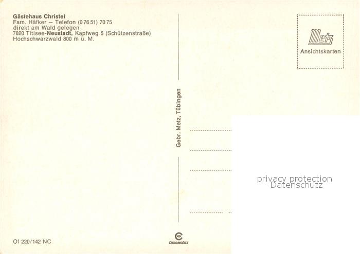 73680140 Neustadt Schwarzwald Gaestehaus Christel postalisch nicht gelaufen Erhaltung siehe scans [FriedD77] KatCode: 11110008315113