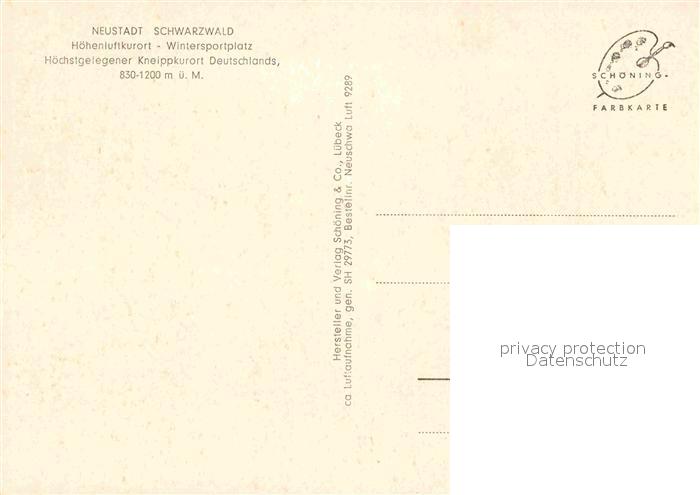 72692806 Neustadt Schwarzwald Hoehenluftkurort Wintersportplatz Hoechstgelegener Kneippkurort Deutschlands Fliegeraufnahme postalisch nicht gelaufen Erhaltung siehe scans [FriedD77] KatCode: 11110008315113