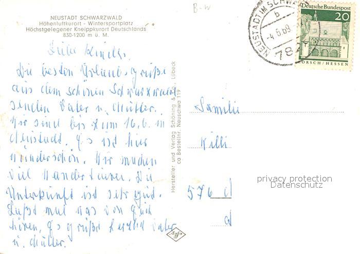 72984863 alte Postkarte Neustadt Schwarzwald Panorama Hoehenluftkurort Kirche Kuckucksuhr postalisch gelaufen Erhaltung siehe scans [FriedD77] KatCode: 11110008315113