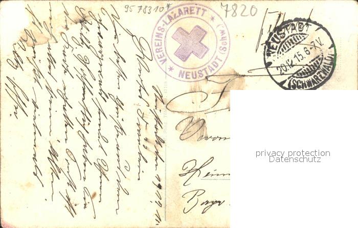 71840162 alte Postkarte Neustadt Schwarzwald Stempel Vereins-Lazarett postalisch gelaufen Feldpost Erhaltung siehe scans KatCode: 11110008315113