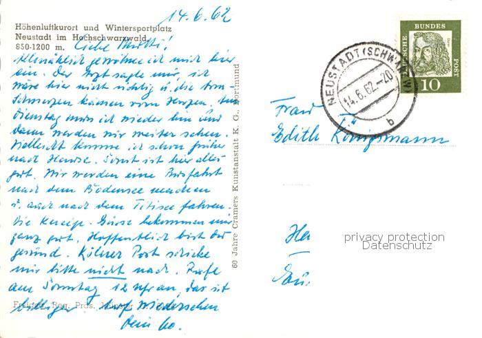 73866270 Neustadt Schwarzwald Titisee-Neustadt Fliegeraufnahme postalisch gelaufen Erhaltung siehe scans [WerneD78] alte Postkarte Wern Katcode 11110008315113
