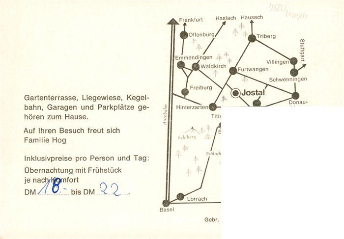 73928816 Neustadt Schwarzwald Titisee-Neustadt Gasthaus Pension Jostalstueble postalisch nicht gelaufen Werbekarte (keine Postkarte) Erhaltung siehe scans [WerneD78] Werbekarte (keine Postkarte) Wern Katcode 11110008315113