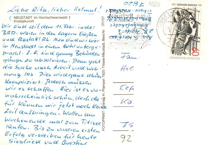 73929416 Neustadt Schwarzwald Titisee-Neustadt Panorama Kirche Marktplatz Jugendherberge postalisch gelaufen Erhaltung siehe scans [WerneD78] alte Postkarte Wern Katcode 11110008315113