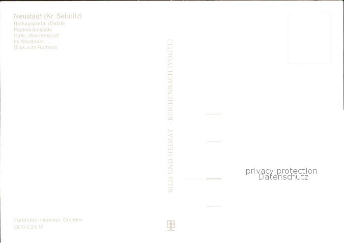 72261115 Neustadt Sebnitz Rathausportal Postmeilensaeule Cafe Wochenpost Stadtpark Rathaus postalisch nicht gelaufen Erhaltung siehe scans KatCode: 11110014287370