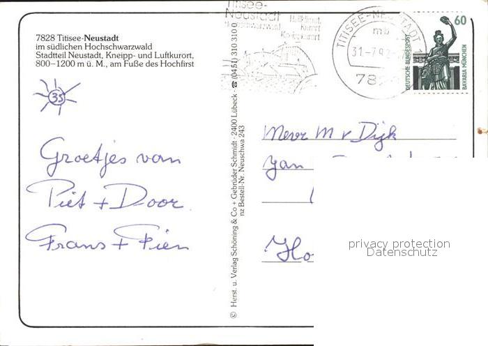 72459851 alte Postkarte Neustadt Titisee Brunnen postalisch gelaufen Erhaltung siehe scans KatCode: 11110008315113