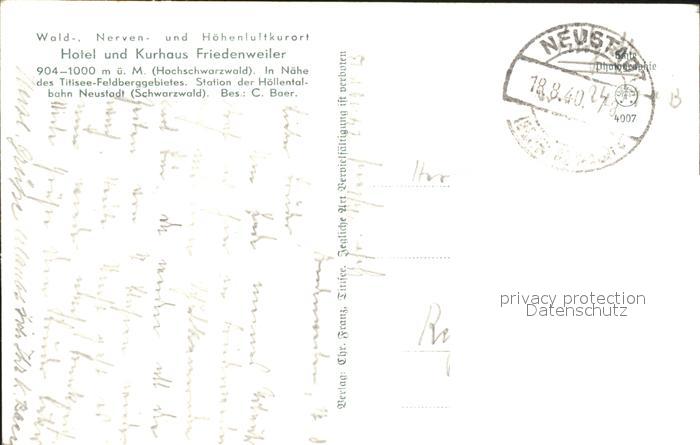 71900002 alte Postkarte Neustadt Titisee Hotel Kurhaus Freidenweiler postalisch gelaufen Feldpost Erhaltung siehe scans KatCode: 11110008315113
