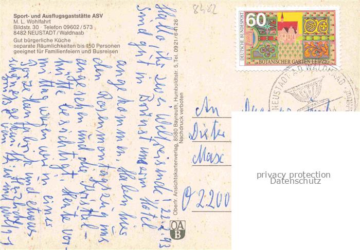 74049970 alte Postkarte Neustadt Waldnaab Sport- und Ausflugsgaststaette ASV Gastraum Panorama postalisch gelaufen Erhaltung siehe scans [FriedD77] KatCode: 11110009374139