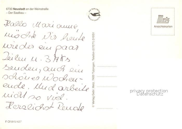 73201762 Neustadt Weinstrasse Der Saalbau postalisch nicht gelaufen Erhaltung siehe scans [KathaD81] KatCode: 11110007316000