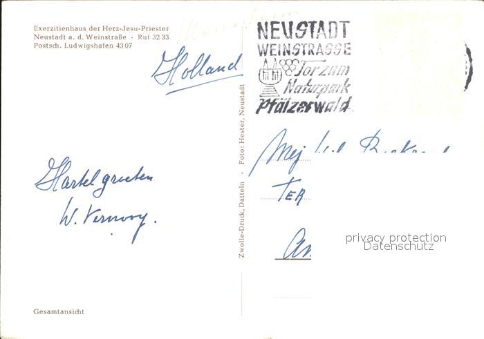 72470934 alte Postkarte Neustadt Weinstrasse Fliegeraufnahme Exerzitienhaus der Herz-Jesu-Priester postalisch gelaufen Erhaltung siehe scans KatCode: 11110007316000