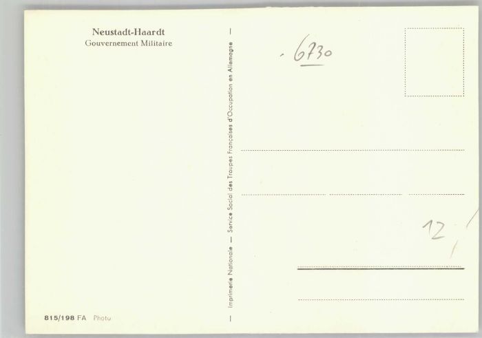40700962 Neustadt Weinstrasse Gouvernement Militaire KatCode 11110007316000