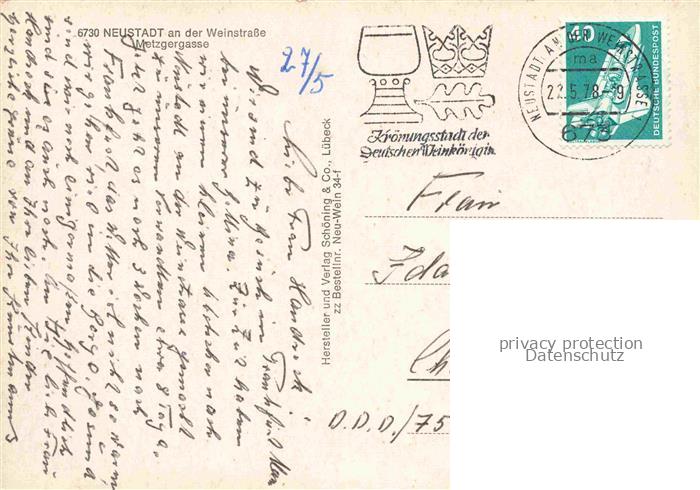 74093826 alte Postkarte Neustadt Weinstrasse Haardt Metzgergasse postalisch gelaufen Erhaltung siehe scans [WerneD78] KatCode: 11110007316000