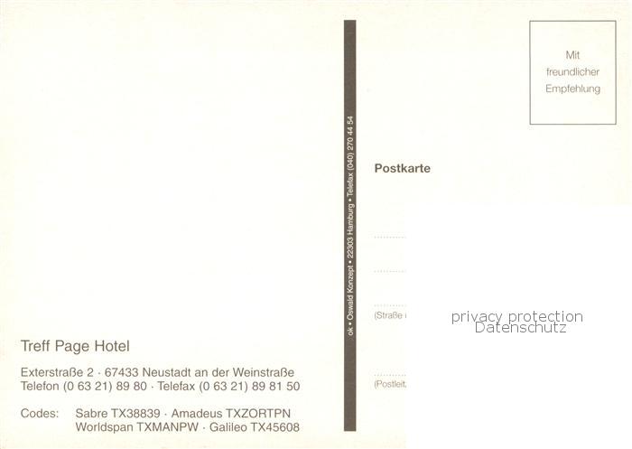 73785404 Neustadt Weinstrasse Haardt Treff Page Hotel postalisch nicht gelaufen Erhaltung siehe scans [FriedD77] KatCode: 11110007316000