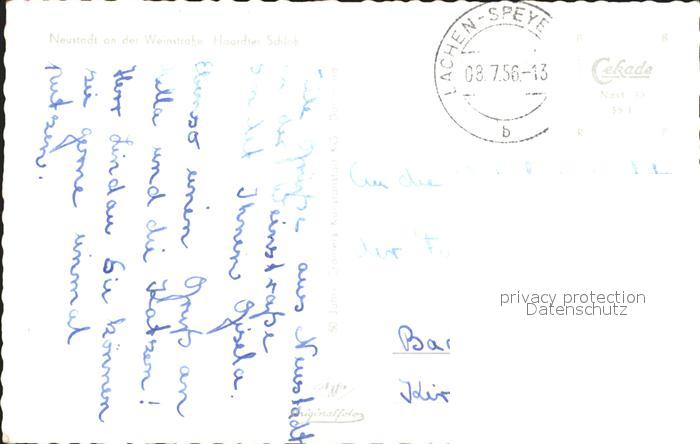 72209333 alte Postkarte Neustadt Weinstrasse Haardter Schloss postalisch gelaufen Erhaltung siehe scans KatCode: 11110007316000