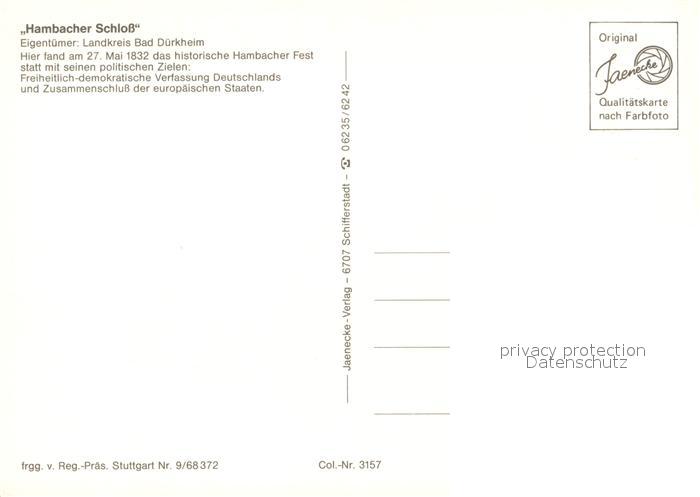 73089026 Neustadt Weinstrasse Hambacher Schloss Fliegeraufnahme postalisch nicht gelaufen Erhaltung siehe scans [PaolaD17] KatCode: 11110007316000