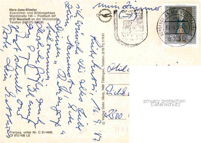 72756549 alte Postkarte Neustadt Weinstrasse Herz Jesu Kloster Fliegeraufnahme postalisch gelaufen Erhaltung siehe scans [WerneD78] KatCode: 11110007316000