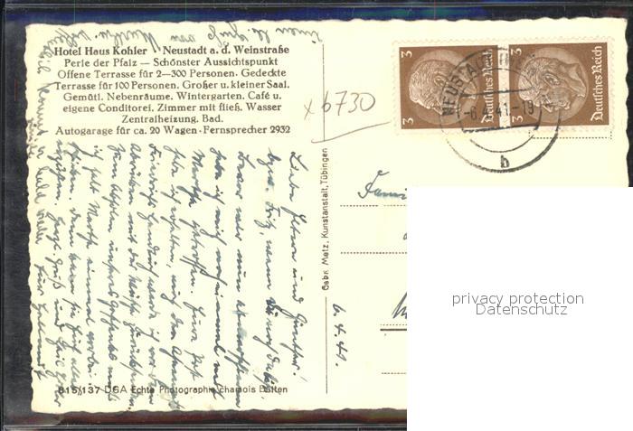 41790252 alte Postkarte Neustadt Weinstrasse Hotel Haus Kohler Restaurant postalisch gelaufen KatCode: 11110007316000