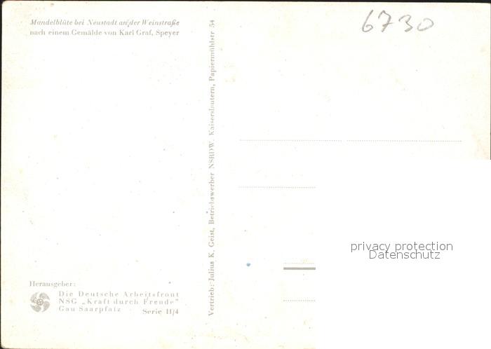 41793312 Neustadt Weinstrasse Mandelbluete Kuensterkarte Karl Graf postalisch nicht gelaufen KatCode: 11110007316000