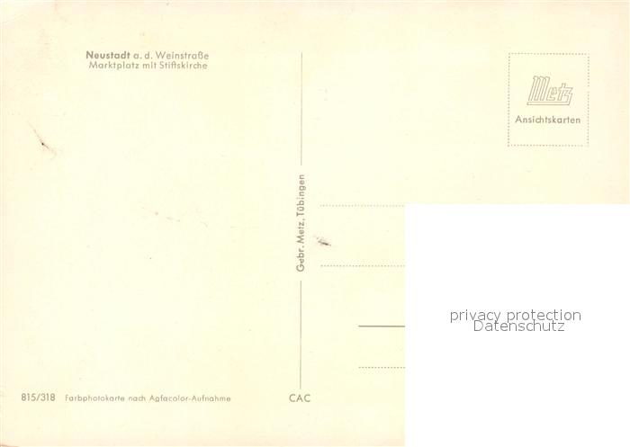 73083062 Neustadt Weinstrasse Marktplatz Stiftskirche postalisch nicht gelaufen Erhaltung siehe scans [NatalD47] KatCode: 11110007316000