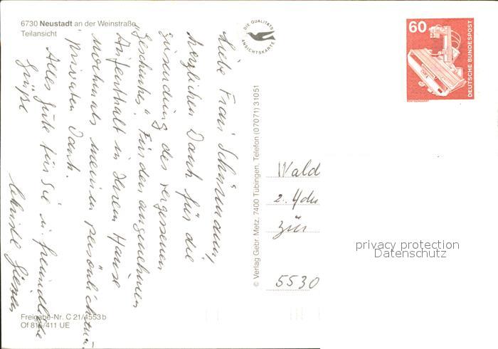 71909499 Neustadt Weinstrasse Teilansicht Fliegeraufnahme postalisch nicht gelaufen Erhaltung siehe scans KatCode: 11110007316000
