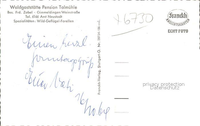 41793031 Neustadt Weinstrasse Waldgastaette Talmuehle postalisch nicht gelaufen Erhaltung siehe scans KatCode: 11110007316000